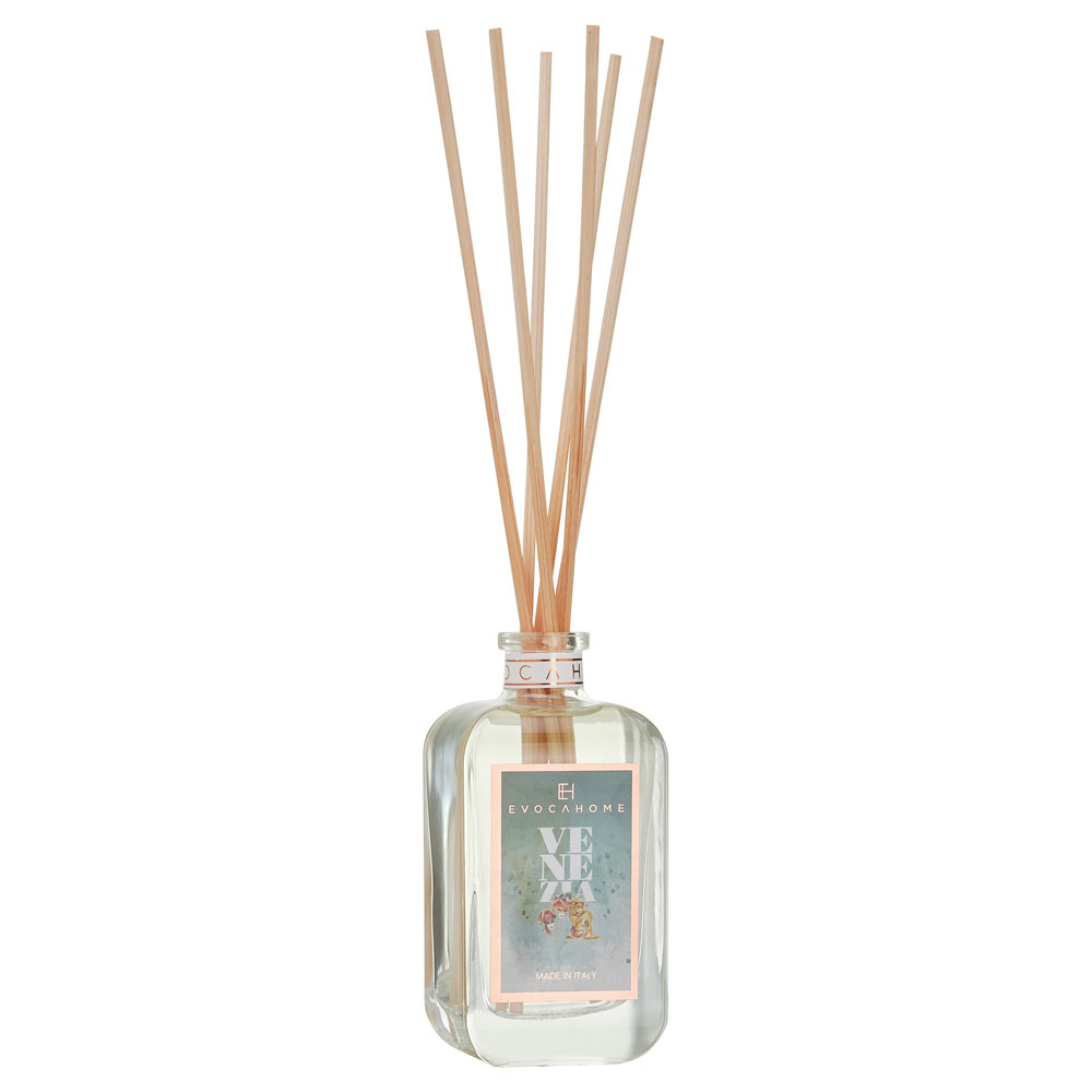 With the scent Venice stick diffuser, you can start your journey to the East: a riot of heterogeneous essences that make the fragrance an unforgettable sensory experience. Let yourself be guided by the spicy and pungent notes of elemi and Indian mint on a delightful journey for the senses.